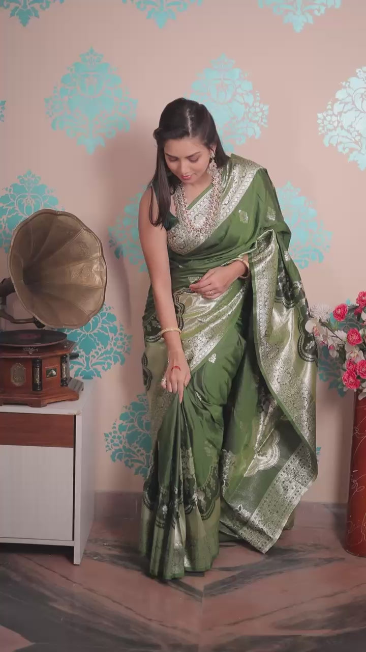 · Fabric: Premium Banarasi Silk for a smooth, luxurious drape.