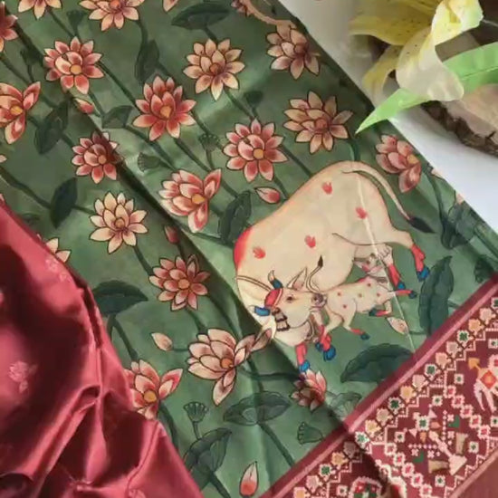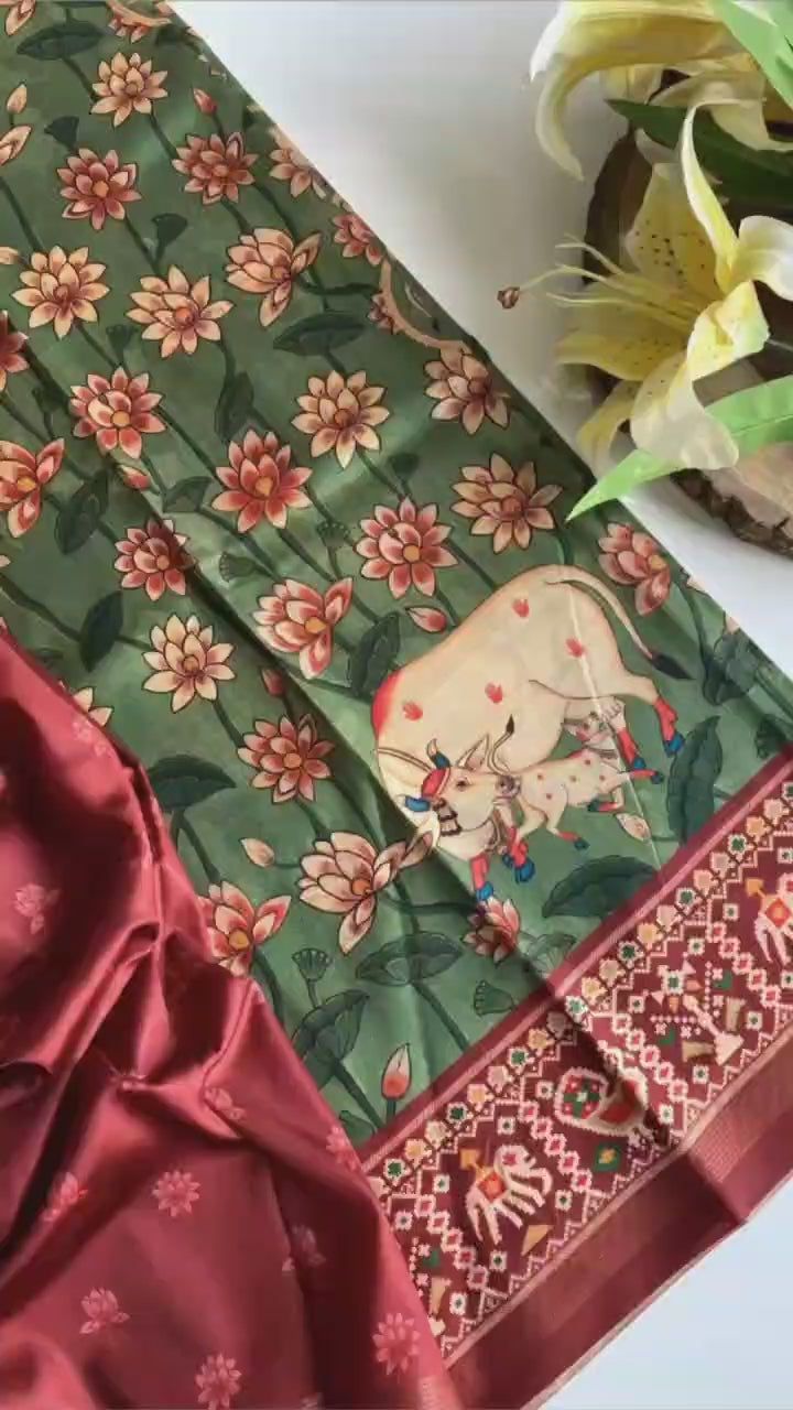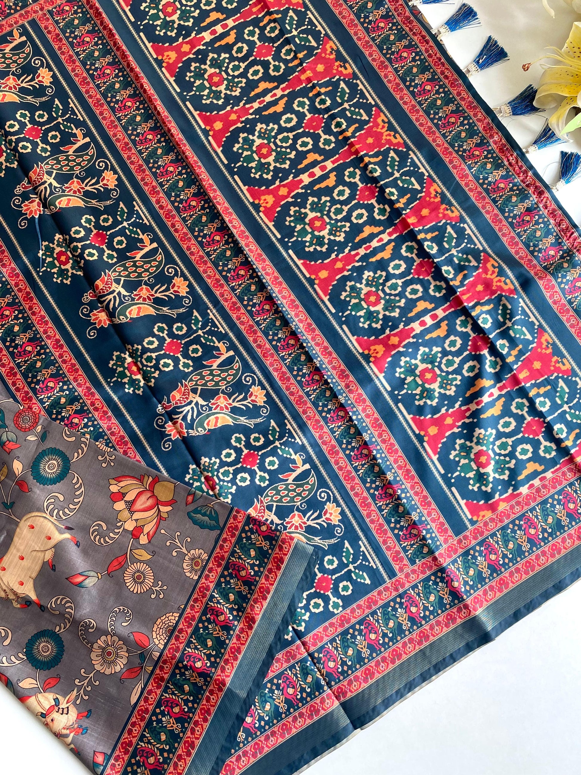Dola Viscose Saree with Digital Print & Zari Patta Border