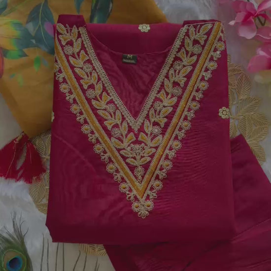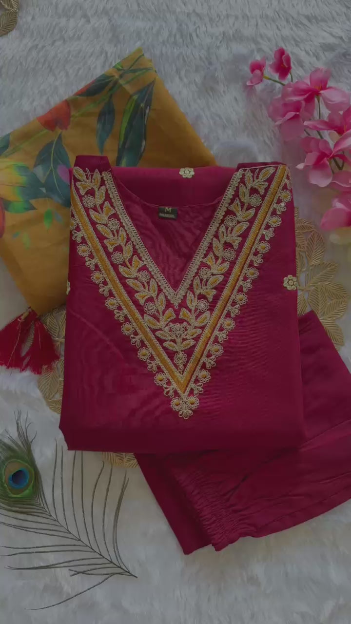 Maroon Roman Silk Kurti Pent Dupatta Set – Luxurious 3-Piece Ensemble
