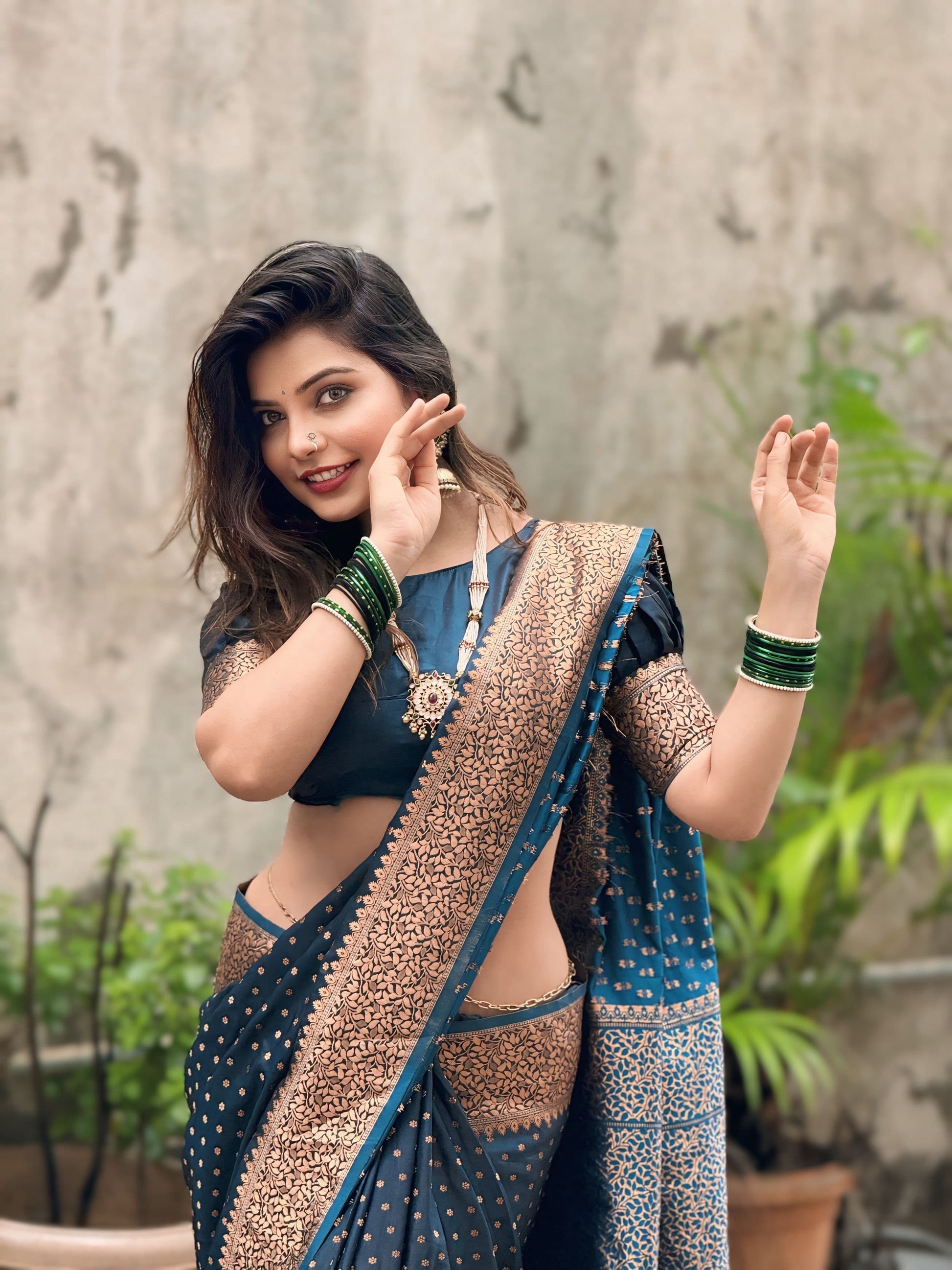 · Fabric: Authentic Banarasi Katan Silk for a luxurious drape and timeless appeal.