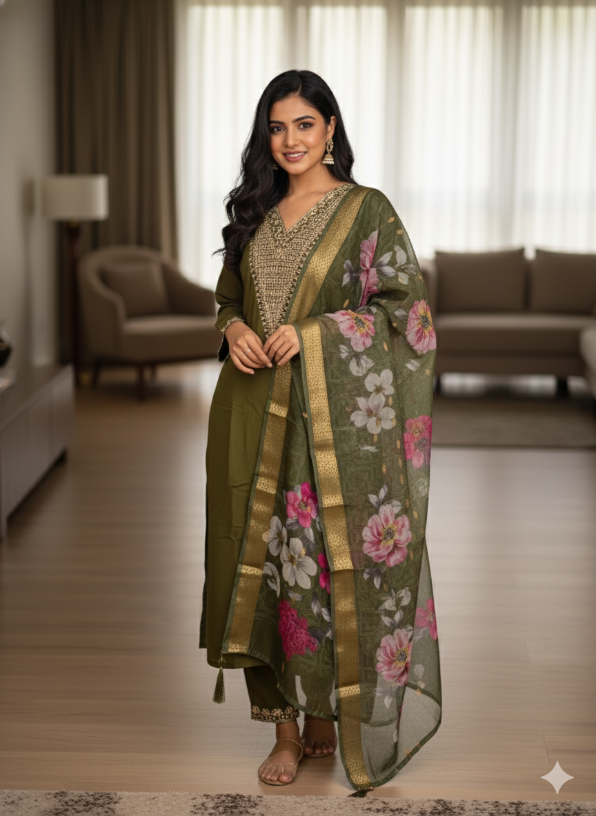 The Heritage Silk Ensemble – A Luxurious 3-Piece Kurti Set